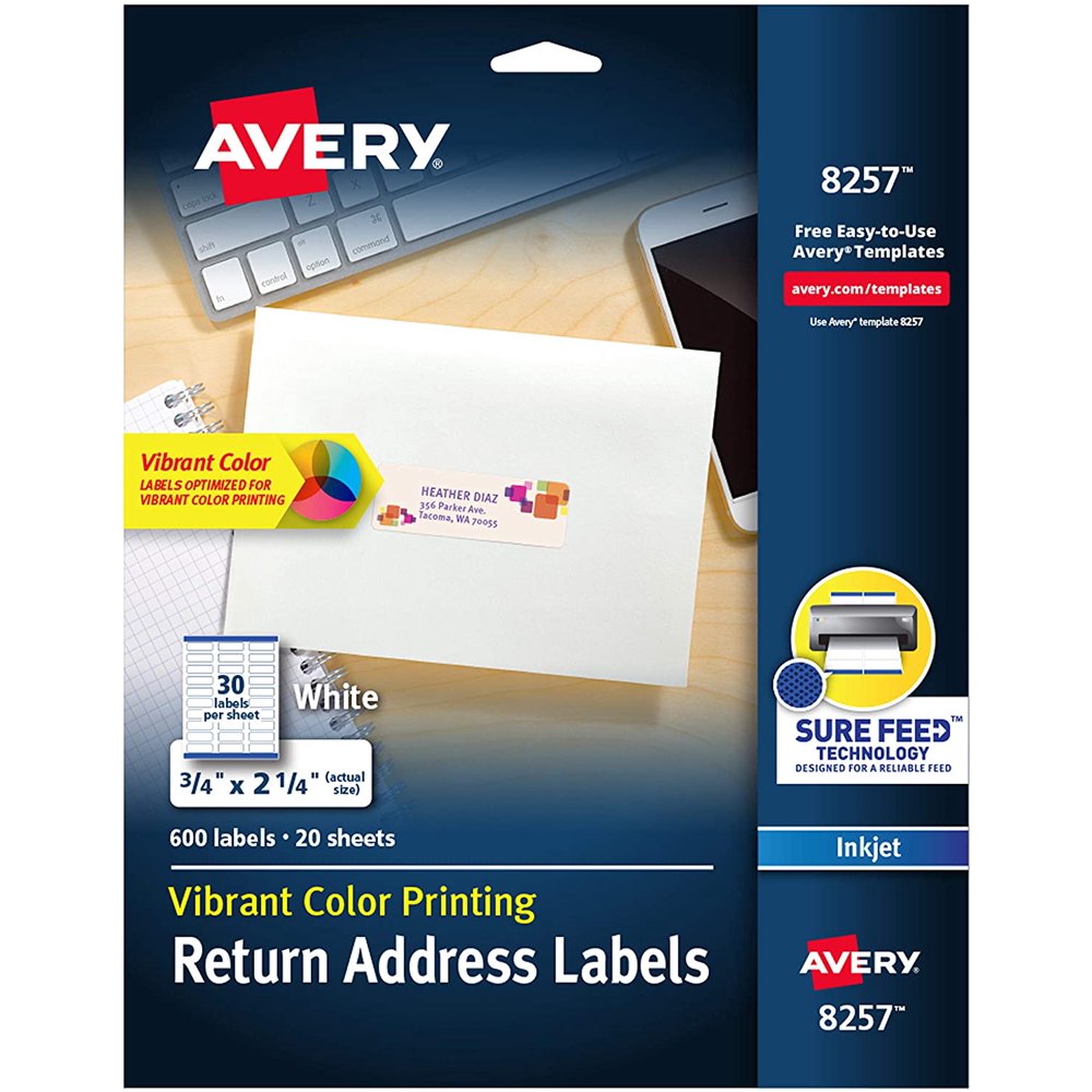 Avery Vibrant Color Printing Labels with Sure Feed for Inkjet Printers,3/4" x 2-1/4", 600 White ...