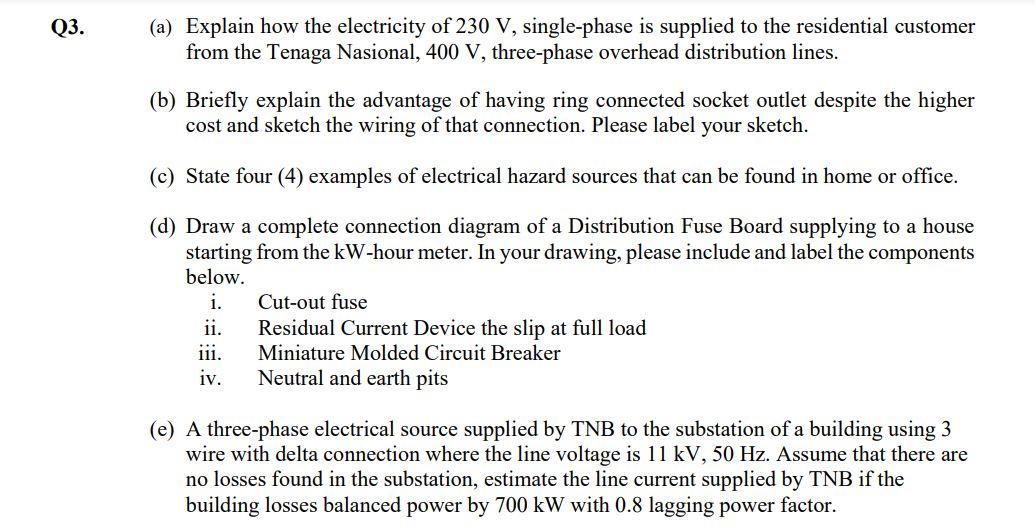 Electrical wiring in the United Kingdom - Wikipedia While three phase loads take balanced power from the three phases, any single phase loads are distributed to ensure equal loading of the three phases. Each row of breakers in the distribution board is fed from a different phase (L1, L2, and L3), to allow 3-pole common-trip breakers to have one pole on each phase. Isolating devices
